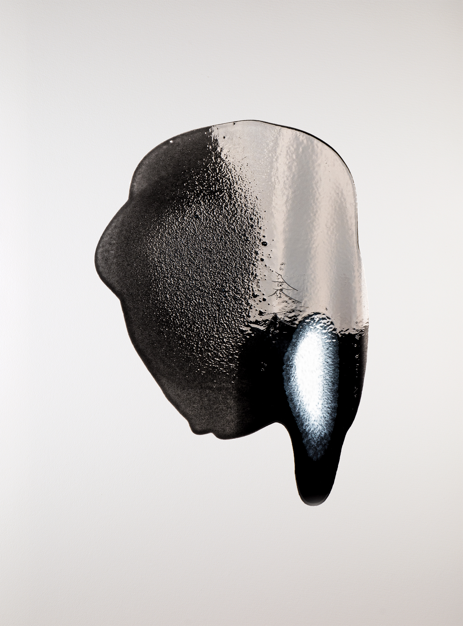 Each individual work in the series is produced using a unique color palette created by mixing pure pigments with polyester resin. These colors are then applied to handmade paper. In the execution of the paintings, we work together, responding to each other’s actions according to the principle of action and reaction. This interaction leads to the emergence of unpredictable shapes and patterns, which continue to evolve until the painting is dry. Although the result of each experiment is random, repeated experiments reveal underlying regularities.