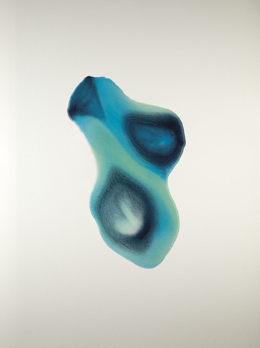 Each individual work in the series is produced using a unique color palette created by mixing pure pigments with polyester resin. These colors are then applied to handmade paper. In the execution of the paintings, we work together, responding to each other’s actions according to the principle of action and reaction. This interaction leads to the emergence of unpredictable shapes and patterns, which continue to evolve until the painting is dry. Although the result of each experiment is random, repeated experiments reveal underlying regularities.